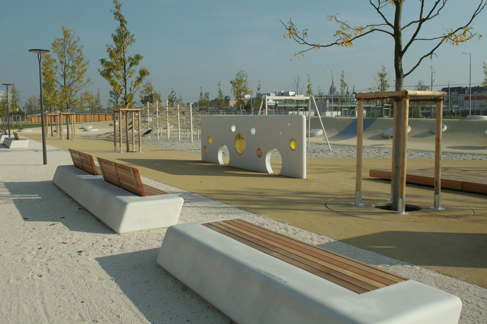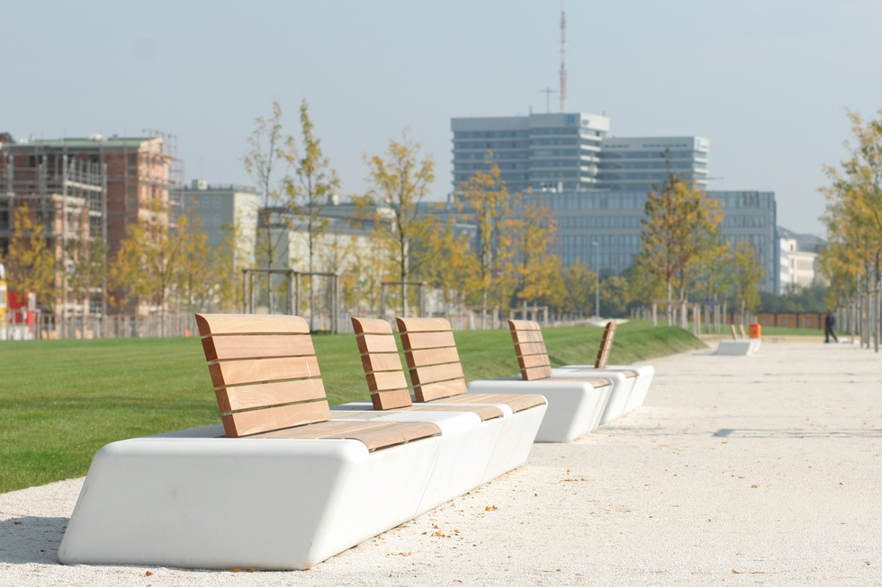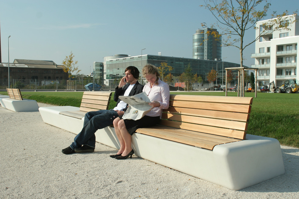 Kod uređenja Munchenskog parka koncept urbanog namještaja morao odgovarati ideji potoka i pokreta. Tako je rođen dinamičan oblik klupe Arpa.